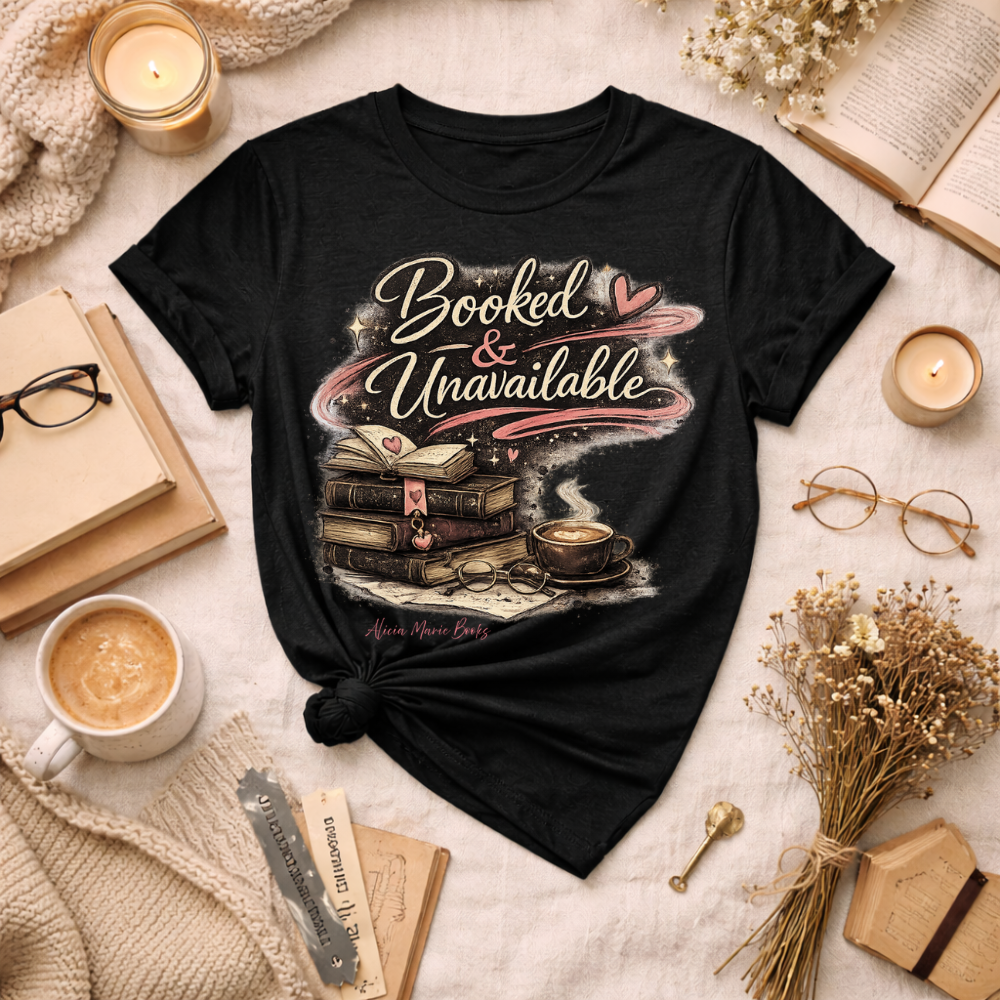 The Booked & Unavailable Tee is for the readers who always have plans — they just involve fictional men, a five-star read, and a hot cup of coffee.